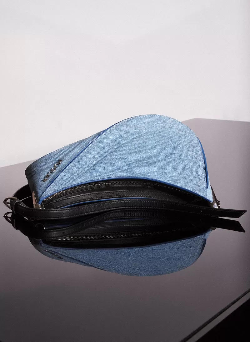 Leather and partially recycled aluminium materialsSilver metal logo and hardwareZip closureMicrosuede lining using recyc…