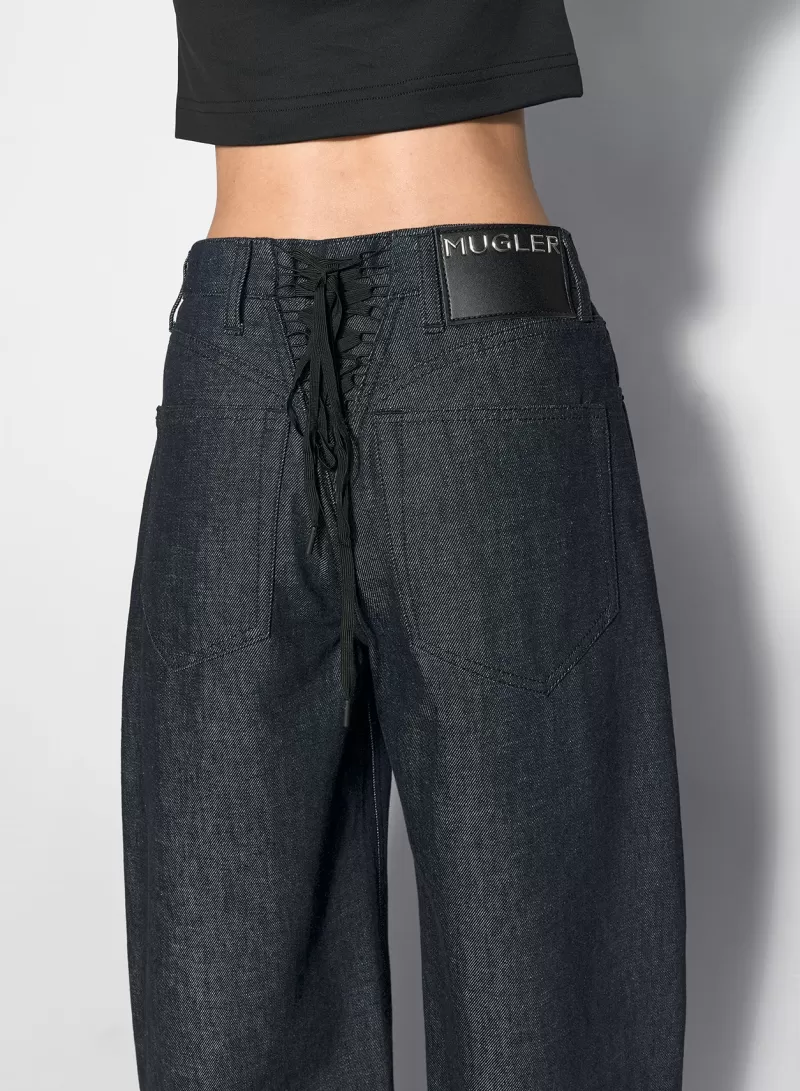 High-waisted jeansWide legFive pocketsLace-up detailing at the back