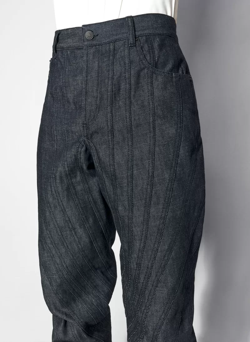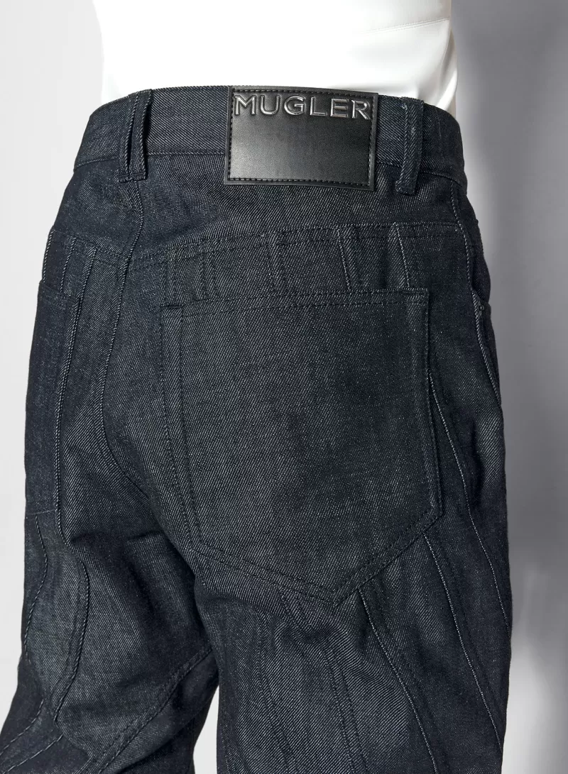 Iconic spiral construction with visible seamsFront button closureFive pocketsMugler tag at back