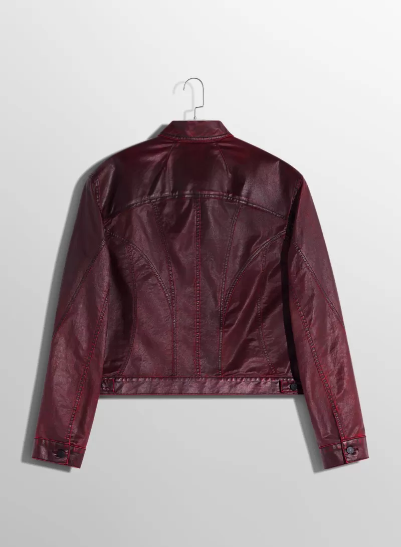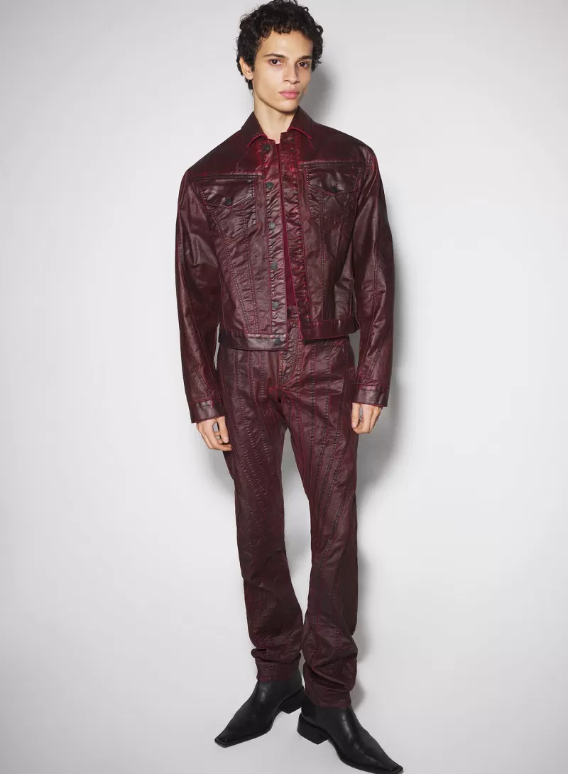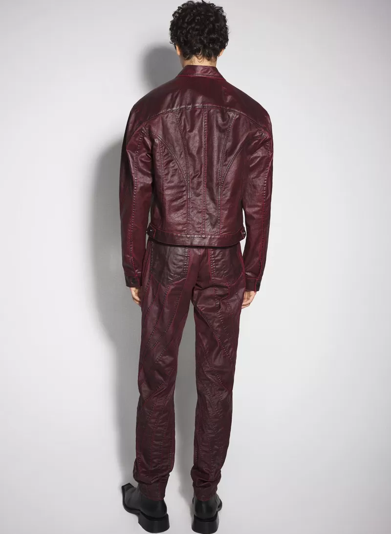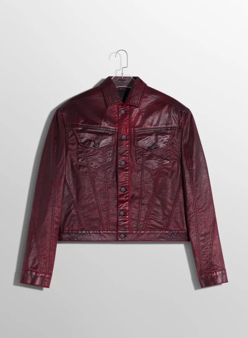 Discount MUGLER burgundy waxed denim jacket