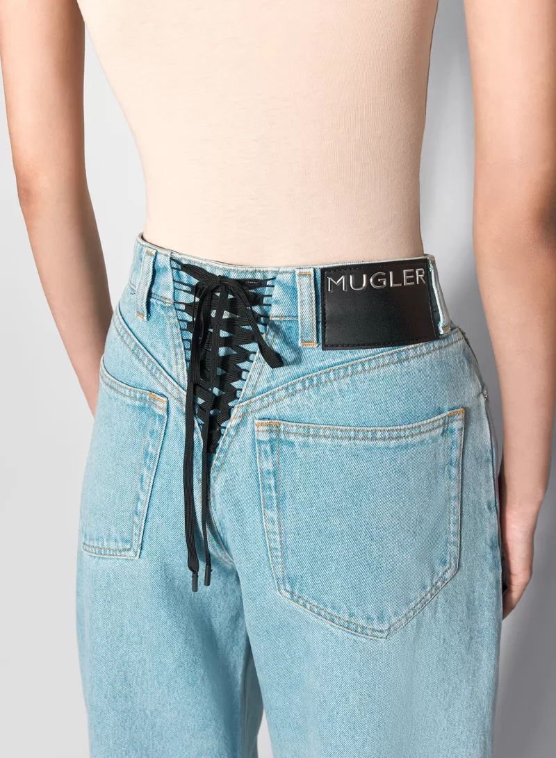 High-waisted jeansWide legFive pocketsLace-up detailing at the back