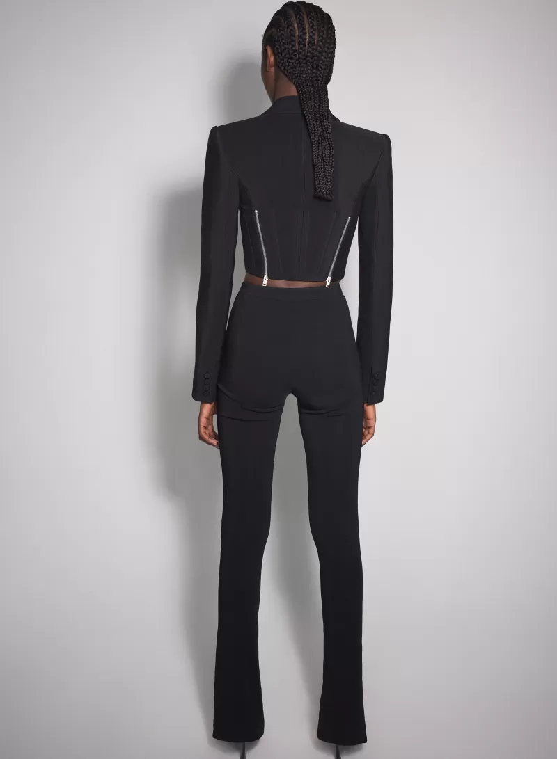 Cheap MUGLER black cut-out tailored jacket with leather lapel