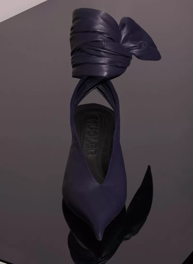 Cheap MUGLER x Ambera Wellmann printed velvet knot fang 95 mules
